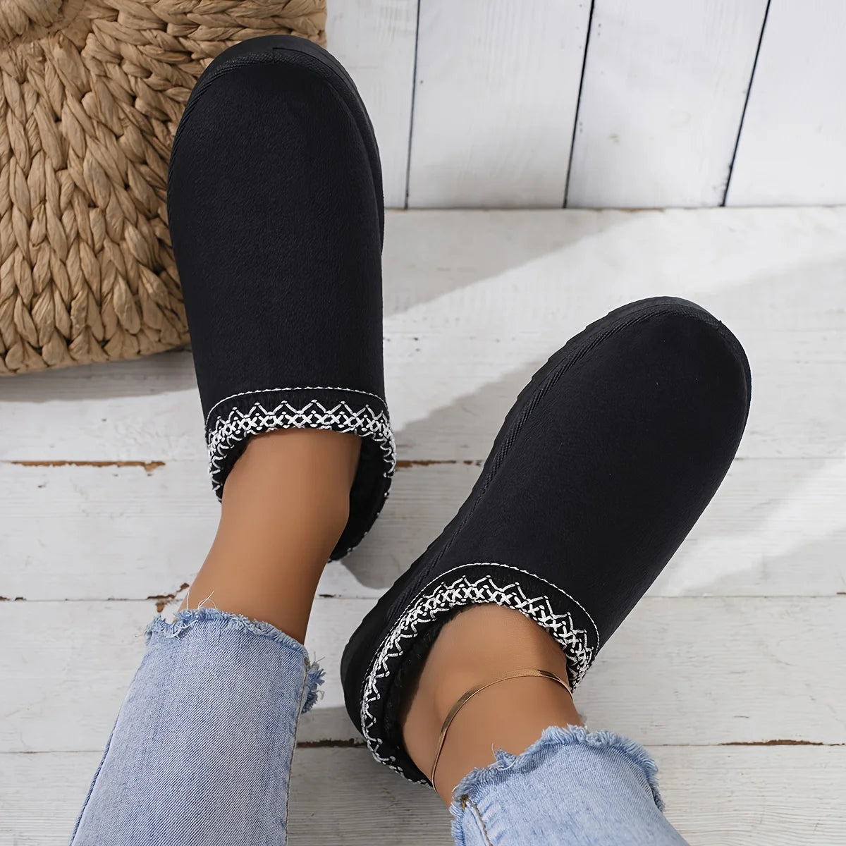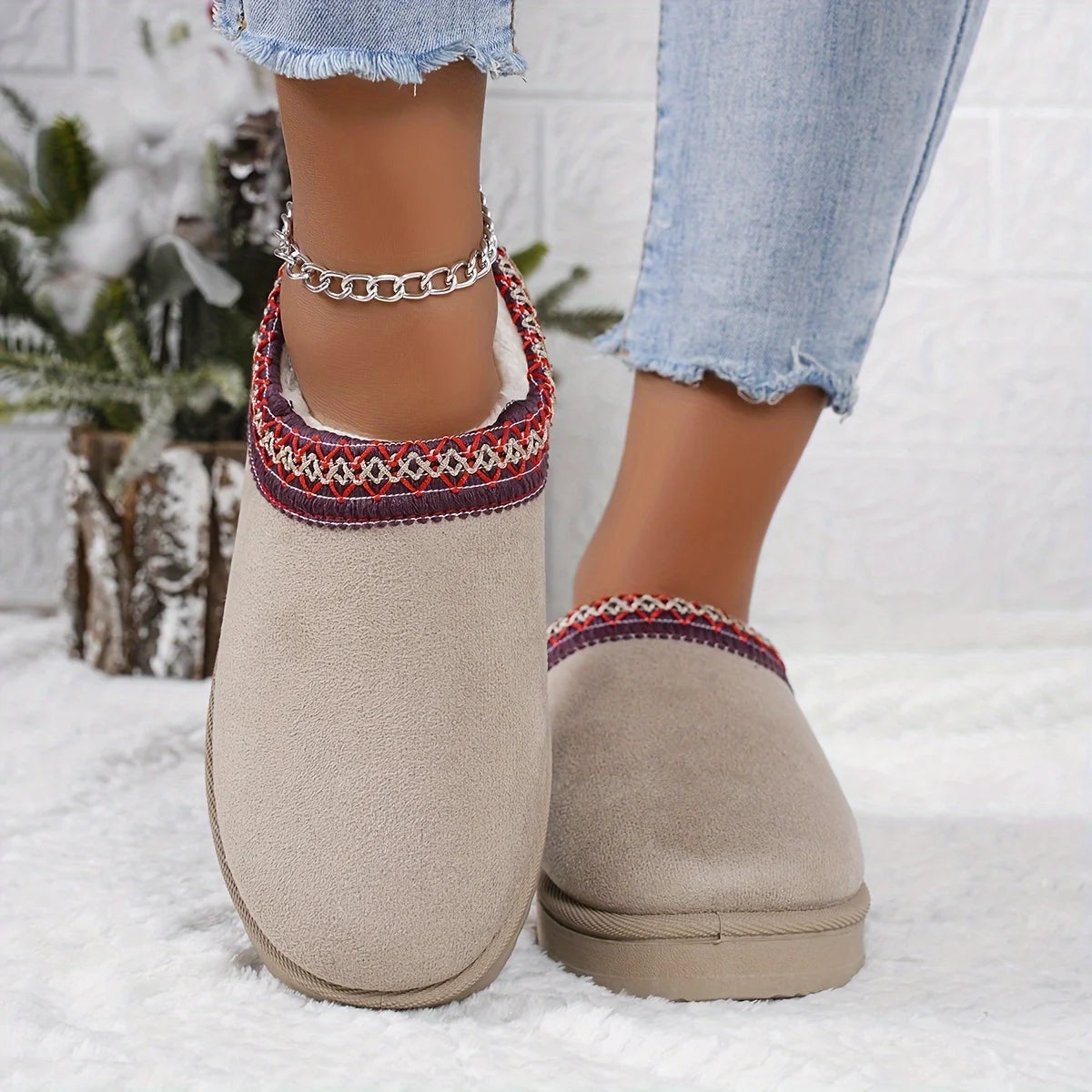 These winter-ready shoes offer more than just comfort— Handcrafted with care, the exterior is made from premium synthetic suede that is high quality and durable, and the interior is 100% plush cotton.